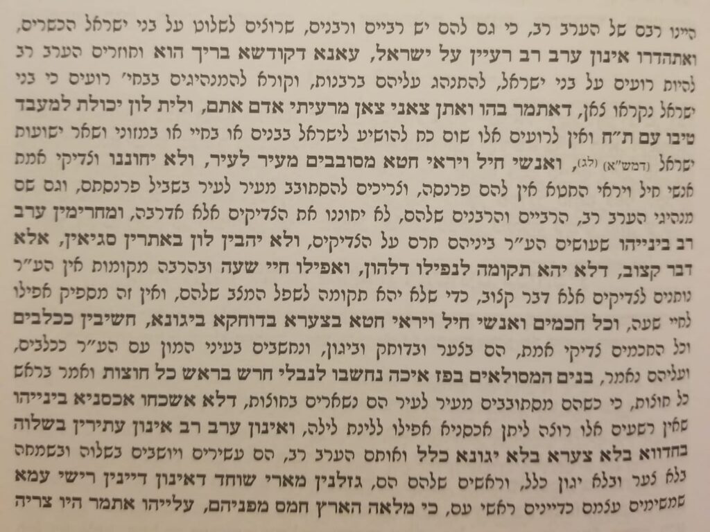 And all the Chochomim, the real righteous ones, are in pain, in distress and in grief, and they are considered in the eyes of the masses and the Erev Rav like dogs, and on the Tzaddikim, it’s written in Eicha 4:2, “The precious children of Zion that are compared to fine gold – alas, they are now treated like earthen jugsโฆ” “Sacred stones are scattered at the head of every street.” The Tzaddikim have to stay in the street when they wander from city to city since these Risho’im dont want to give them a place to stay even just for the night. And these Erev Rav are the rich ones and they dwell in peace, with happiness, without pain or grief at all. And their leaders are thieves that take bribery that make themselves like Dayanim that are the leaders of the people. The land is filled with extortion because of them. On them it’s written in Eicha 1:5, “Her adversaries have become [her] masterโฆ”