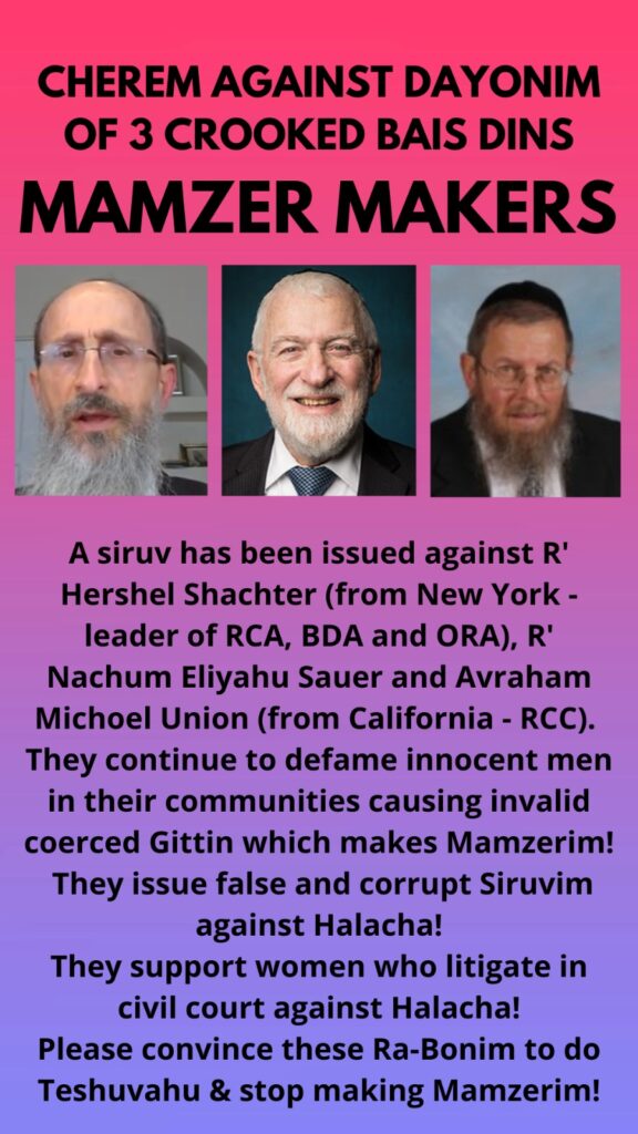 Please see audio of loose translation of attached Siruv Letter against R’ Hershel Shachter (from New York – leader of RCA, BDA and ORA) R’ Nachum Eliyahu Sauer and Avraham Michoel Union (from California – RCC).